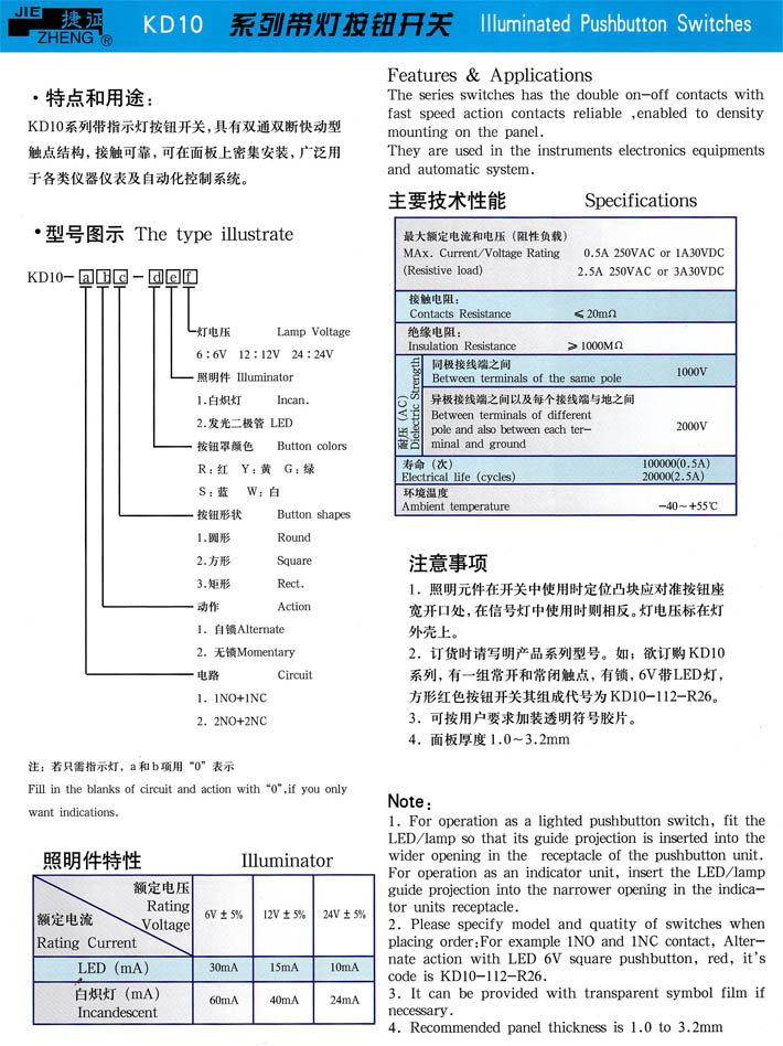 產(chǎn)品型號(hào):KD10系列帶燈按鈕開(kāi)關(guān)