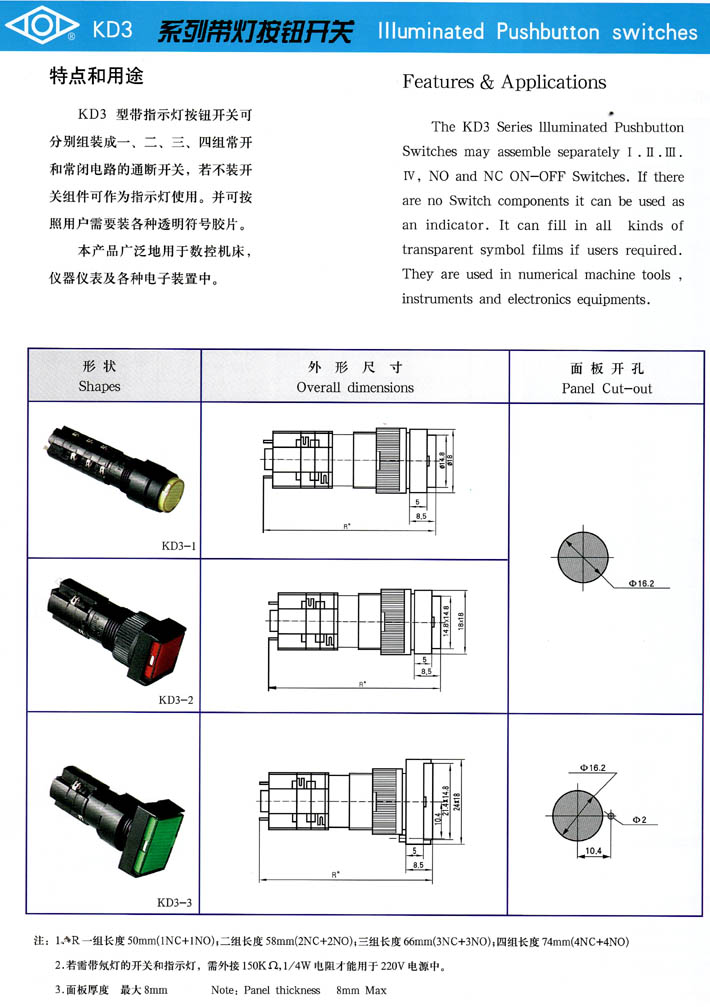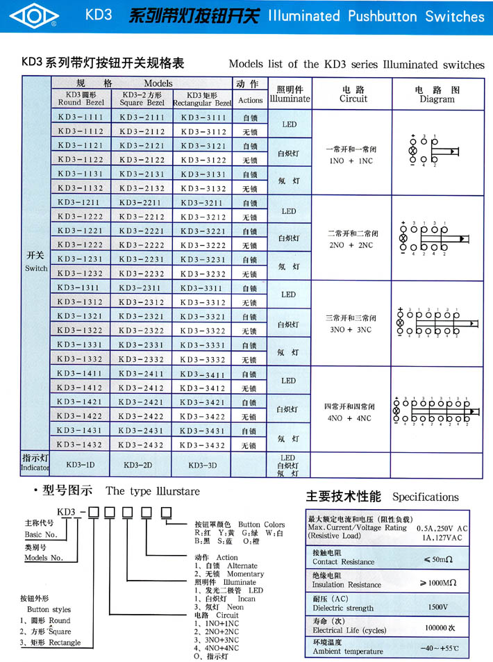 • KD3系列帶燈按鈕開 產(chǎn)品型號:KD3系列帶燈按鈕開
